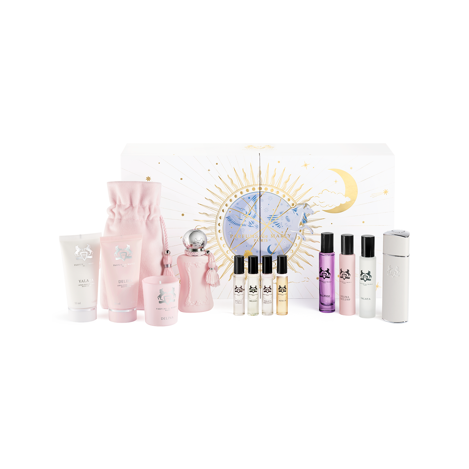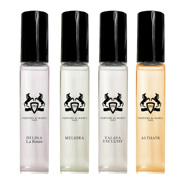 - 4x5ml Discovery (Delina La RosĆ©e, Meliora, Valaya Exclusif, AlthaĆÆr)- offers the full magic of Parfums de Marly, from captivating warmth to delicate freshness, from florals to spices, the Maisonās most iconic fragrances await you.